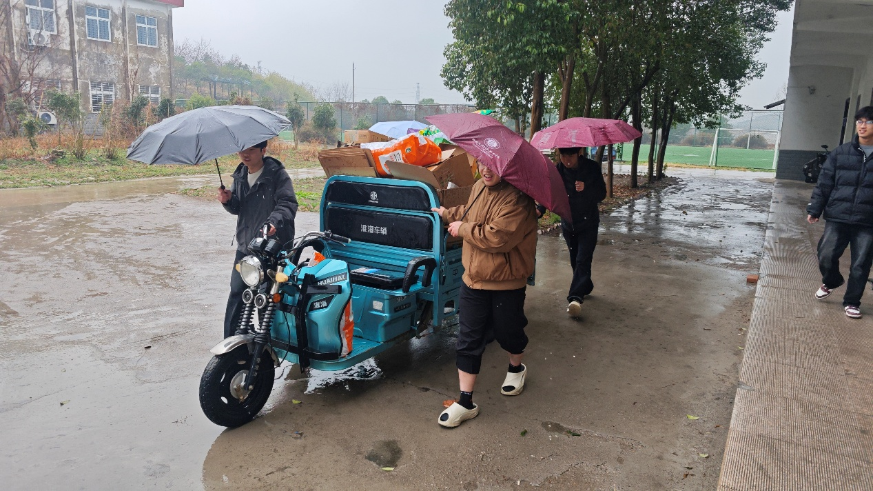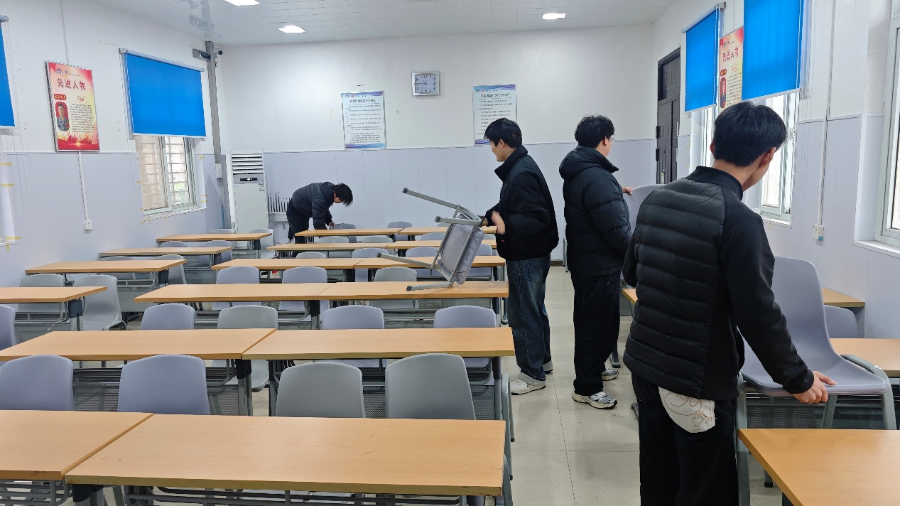 当日阴雨绵绵,地面湿滑,不少同学的鞋袜被雨水浸透,却依旧热情不减、斗志昂扬。从环境整治到物资保障,从细节清整到服务奉献,一个个忙碌的身影、一次次认真的付出,无不彰显着新时代化工人的责任与担当。